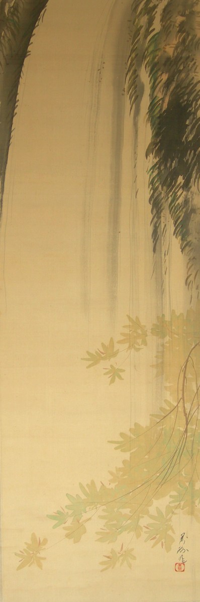 RV-72 Publicado 20 julio, 2014 en 892 × 2688 en Galería ← Anterior Siguiente → Cascada Japón, 1900-1940 Firmado Koshio Bishû, con sello hanko Bishû Tinta y color sobre seda, montaje en seda Jikusaki de madera Rollo: 180 x 54 cm. Pintura: 125 x 41 cm. Me gusta Cargando...